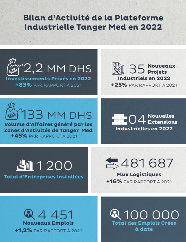 Sa Majesté le Roi Mohammed VI inaugure l’usine Renault Tanger Med, la plus grande unité de production automobile d’Afrique. Durant cette même année, la zone économique « Tanger Automotive City » démarre ses activités, venue accompagner l’installation de soustraitants automobiles autour du Groupe Renault, ainsi que la zone « Tétouan Shore » dédiée aux métiers de l’offshoring